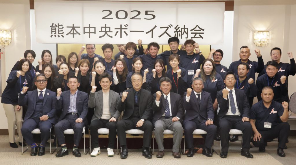 2025.12.20(土) 水前寺共済会館にて2025熊本中央ボーイズ納会が開催されました。球団役員・指導者・保護者会が集い、今年一年の感謝と労いを込めて、美味しい料理とお酒を交えながら親睦を深めました。田邉代表・福田副代表・大津監督・清田相談役よりご挨拶と今年一年の総括のお言葉を頂き、来年も「選手」「球団役員+指導者」「保護者会」が三位一体となり、飛躍する年になる事を祈念して閉会致しました。