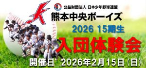 2026.01.24(土) 【入団体験会のご案内】 熊本中央ボーイズでは2026.02.15(日)に第15期生の新入団体験会を開催致します。球団一同、多数の皆様のご参加をお待ちしてます‼️お気軽にお問合せ下さい♪ 【熊本 […]